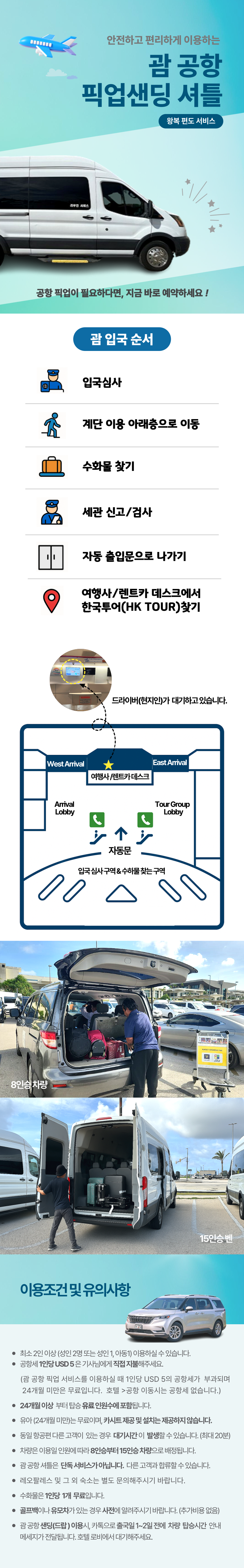 편리하고 안전하게 이용할 수 있는 괌 공항 픽업 셔틀 서비스