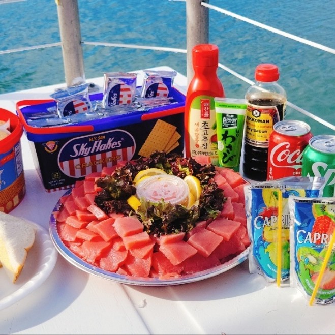🐬 돌핀와칭, 바다낚시, 스노클링 🍣 참치회+스낵 🍺 맥주, 소프드 드링크 📷 수중사진촬영 |