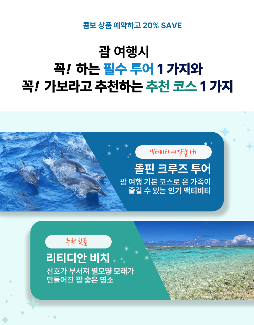 괌에서 꼭 하는 돌핀크루즈와 자연 그대로의 진짜 프라이빗 비치 리티디안 비치패스 콤보