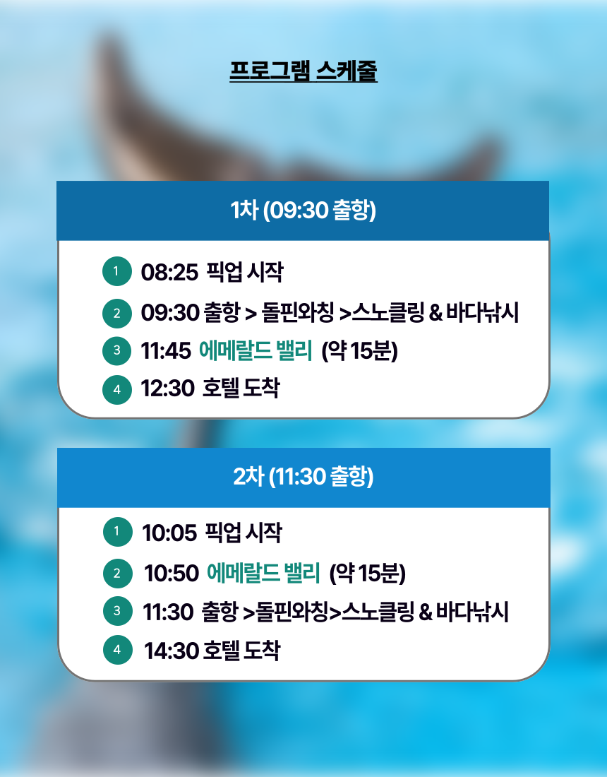 ⭐ 각 투어별 이용일은 구매하기를 진행하시면 입력하실 수 있습니다. 리티디안 프라이빗 비치 이용 예정일은 요청사항에 기재해주시기 바랍니다.